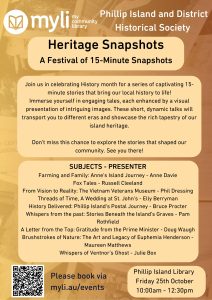 Phillip Island Historical Society – Heritage Snapshots A Festival of 15-Minute Snapshots